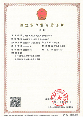 蘇州市吳中區東吳建筑有限責任公司,具有房屋建筑施工總承包一級、裝飾裝修工程設計與施工二級一體化資質、機電設備安裝三級資質、市政公用總承包三級資質企業,通過ISO9001質量管理體系認證、資信等級AAA級。